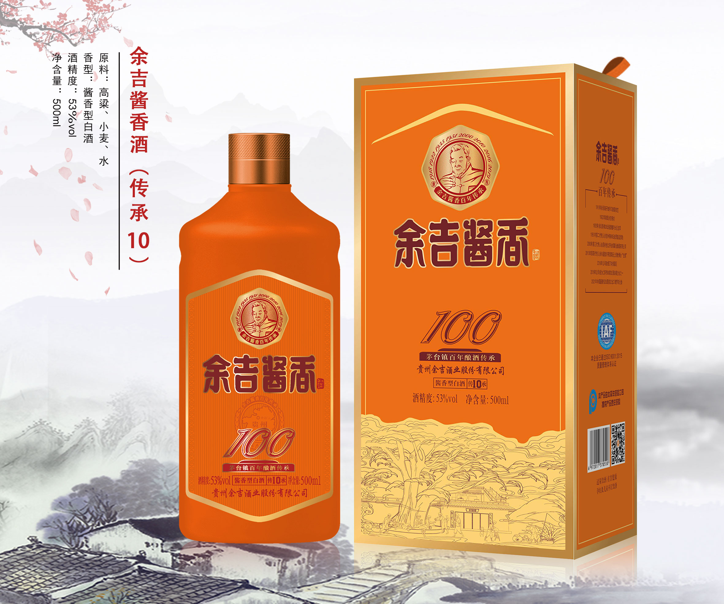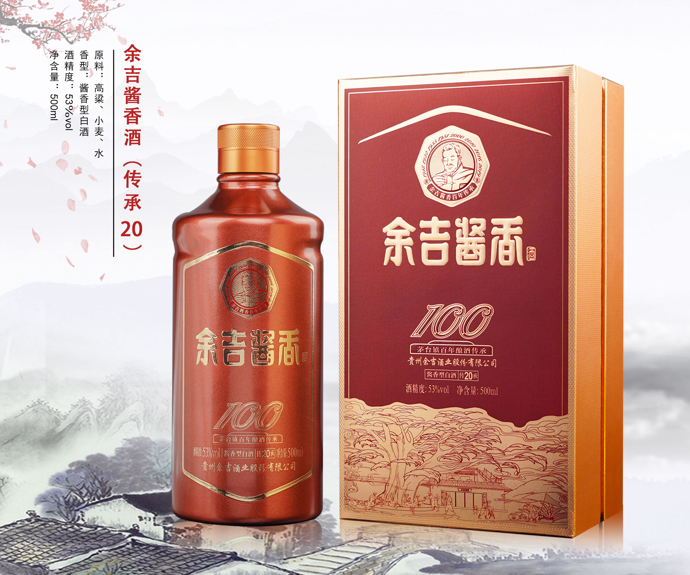 贵州余吉酒业股份有限公司旗下的余吉系列产品,由关联公司贵州省仁怀市茅台镇联合酿酒有限公司所生产,位于贵州茅台镇酱酒核心产区,本企业由创始人余廷海,于1918年学习酿酒技艺至1922年建成余吉烧坊,后由小儿子余吉林继承发展,如今已是四代传承的老牌企业。我公司是仁怀市酒类生产规模企业之一,也是一家产销一体化的企业。2010年公司产品在上海世博会获得“金奖”;2021年公司为中国酱香型白酒首次出口俄罗斯企业;2022年公司是贵州省首家“电酿酒”绿色低碳示范基地。我公司拥有先进的生产设备和容量较大的万吨储酒罐区,公司占地面积120余亩,有三个生产厂区,年产酱酒上千吨,为广大消费者能喝到优质健康白酒提供了有力保障。我公司坚持“三全”、“三化”的管理体制,“爱国、爱党、爱家、爱厂”的企业价值,始终坚守“诚信做人,质量求生”的原则来发展企业。